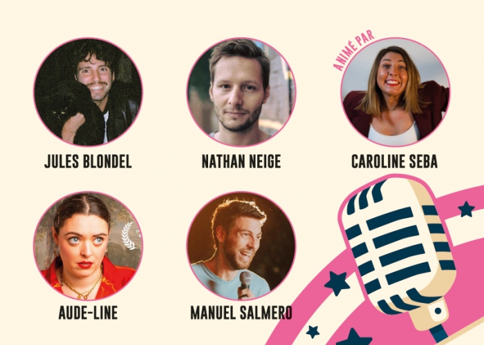 Un plateau de talents repérés lors des scènes ouvertes Kandidator, véritables institutions de l’humour, précédé de jeunes humoristes de l'EHAS (École d'Humour et d'Arts Scéniques).