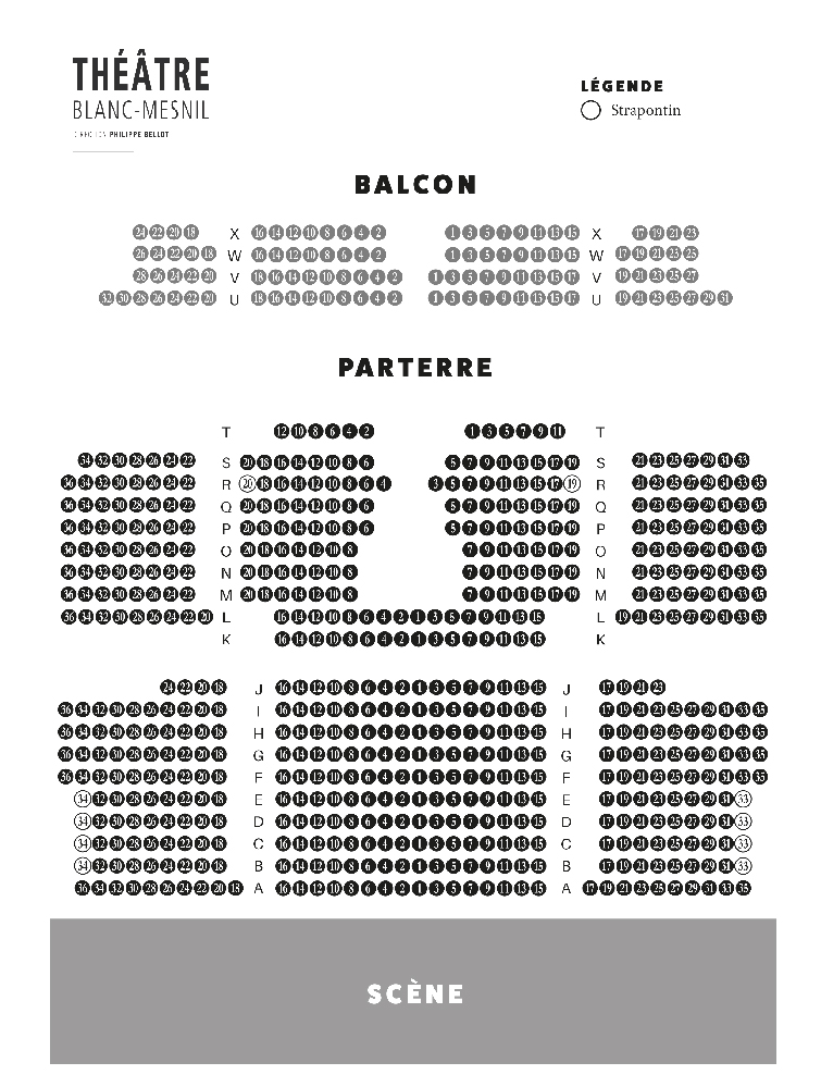 Plan de salle (placement numéroté Salle Barbara)
